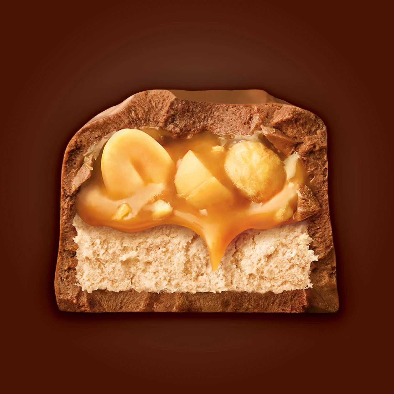- Chocolate candy bars packed with milk chocolate, roasted peanuts, nougat, and caramel