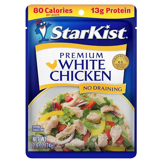 - Starkist Premium White Chicken pouches feature fully cooked, tender chicken that is ready to enjoy in all of your favorite recipes. It’s perfect for quick snacks or meals on the go