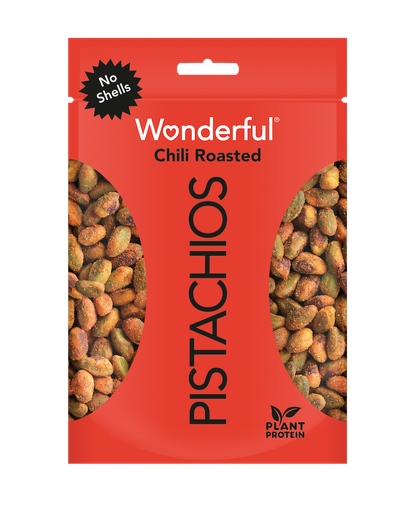 Turn up the heat with Wonderful Pistachios No Shells Chili Roasted. They’re bursting with the big, bold flavors of red pepper, garlic, and vinegar to tingle your tongue and keep you craving more. Skip the shells and get spicy for Less Crackin’, and More Snackin’.